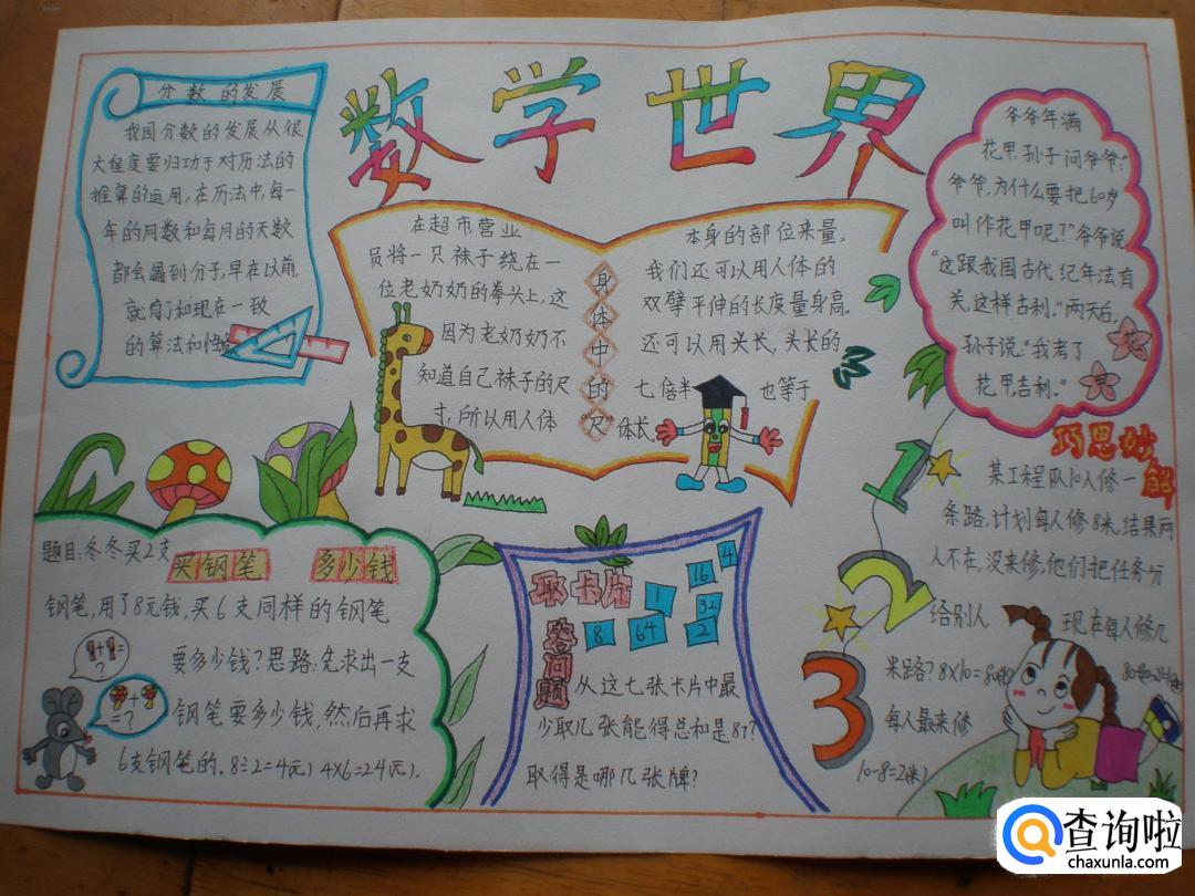 首先我们要明确手抄报的主题是什么,才好开始构思内容,也好给自己的手抄报取一个好听的名字,“数学天地”是大家比较常用的手抄报名字。