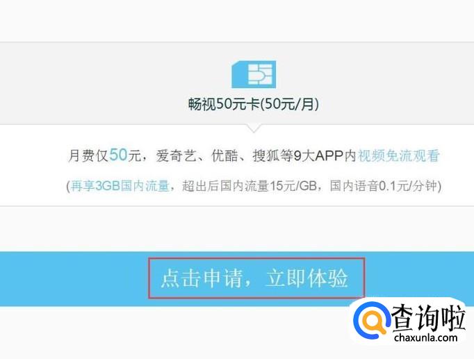 首先,使用搜索引擎搜索“联通畅视卡”关键字,在搜索结果页面中,点击进入官网申请页面。