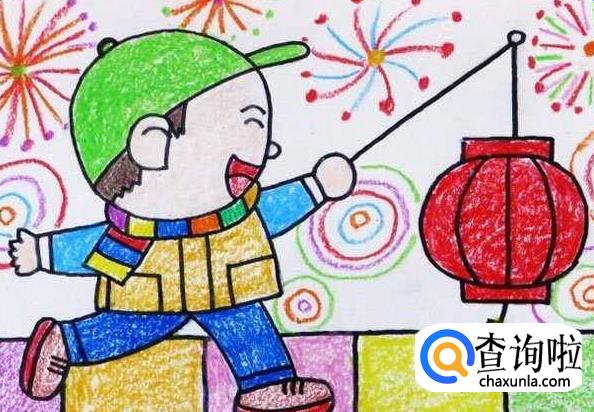满天的烟花,小朋友们手里打着灯笼,在外面欢喜地奔跑着,庆祝新年红红火火,欢天喜地。