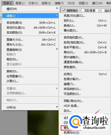 我们找到图像菜单里的调整选项,点击该选项在其下拉菜单那里找到替换颜色选项,如图所示: