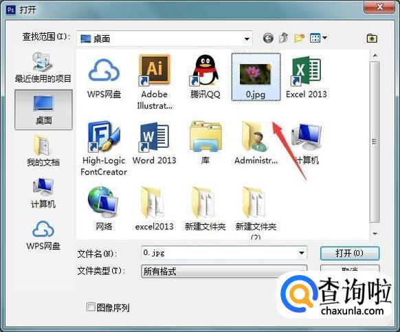 打开ps之后我们按下Ctrl+O键在弹出的对话框内找到我们的图片素材,如图所示: