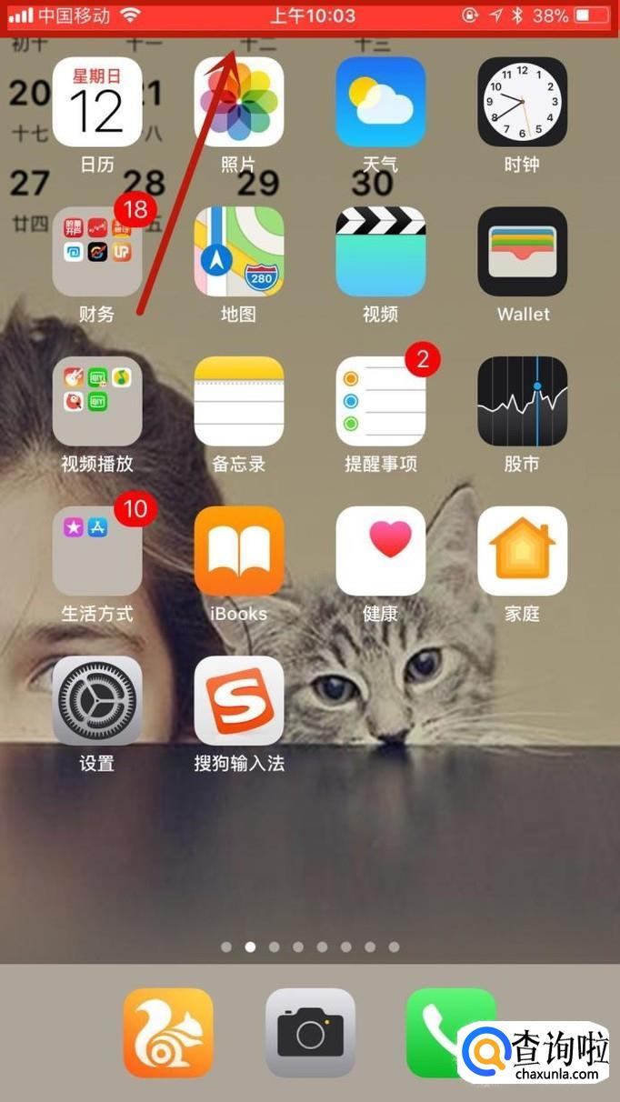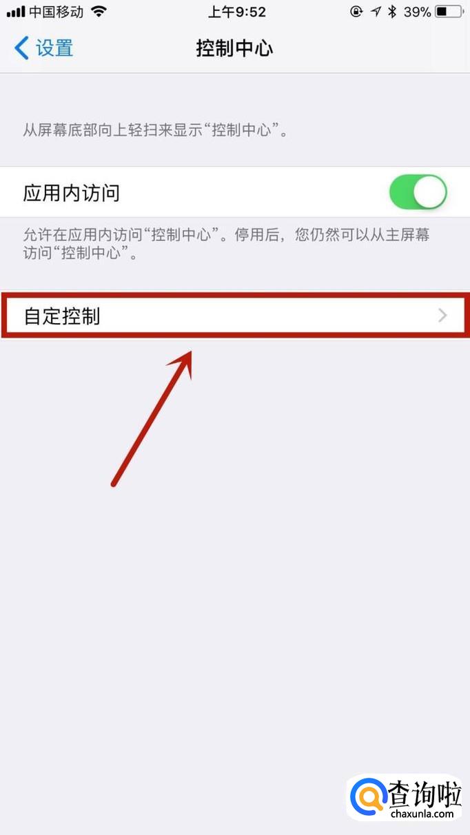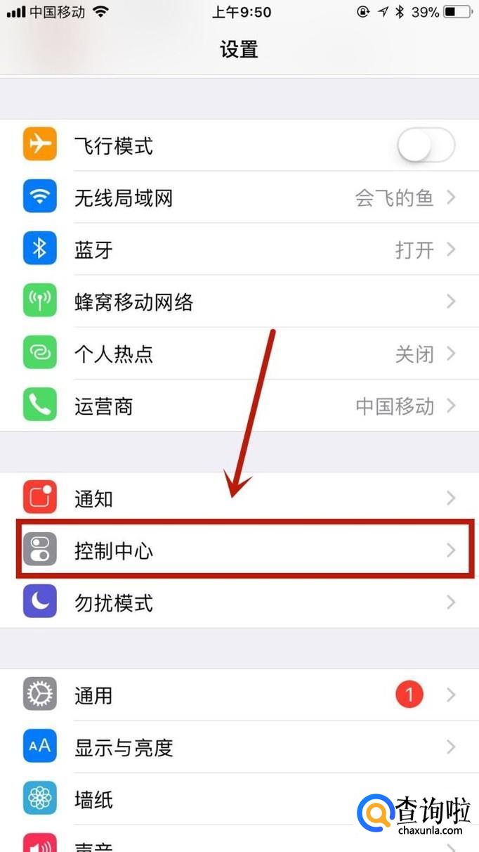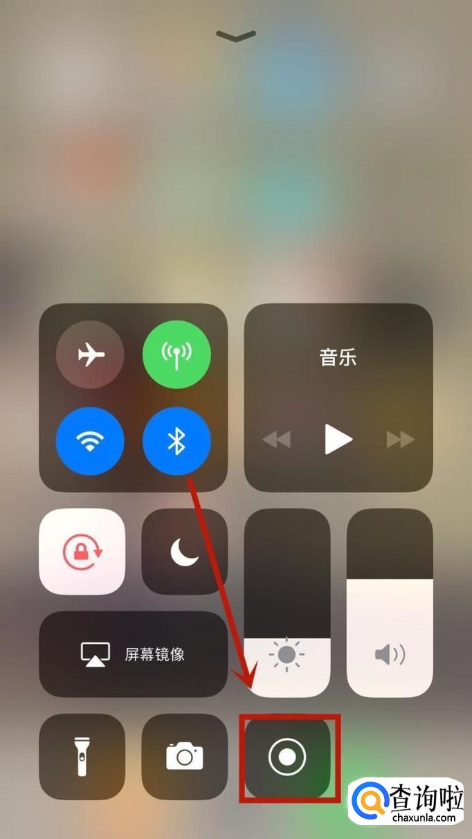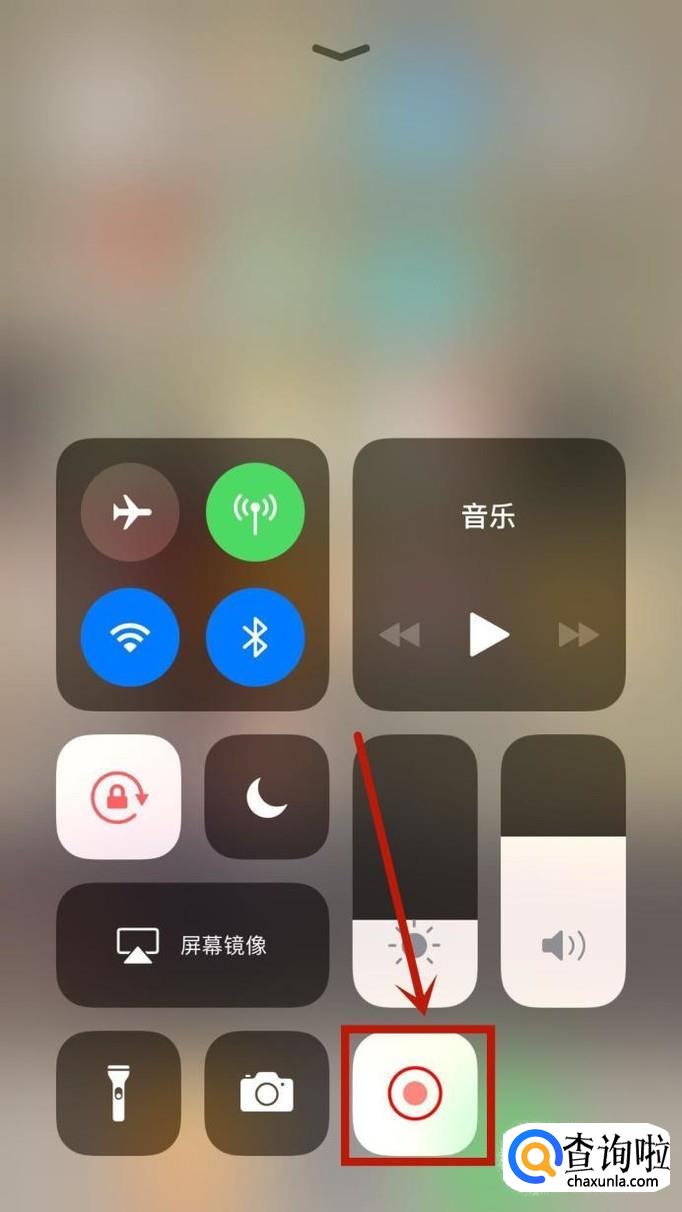 首先,把屏幕往上滑,进入控制中心,如下图所示。