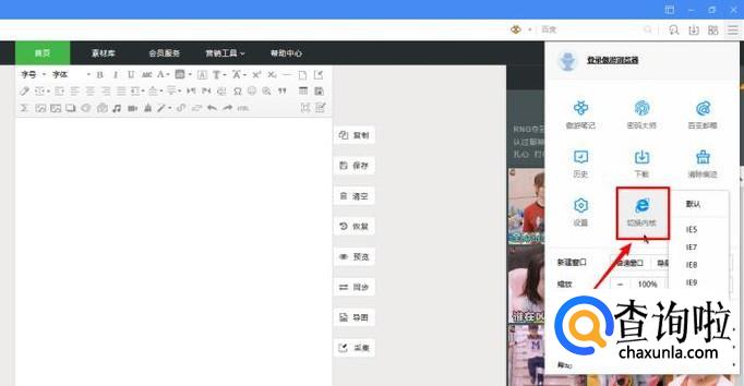 傲游浏览器:傲游浏览器的切换开关在菜单中,点击右上角的三个横线的菜单键,可以看到切换内核按钮,同样闪电图标为极速模式,e字形图标为ie内核兼容模式。