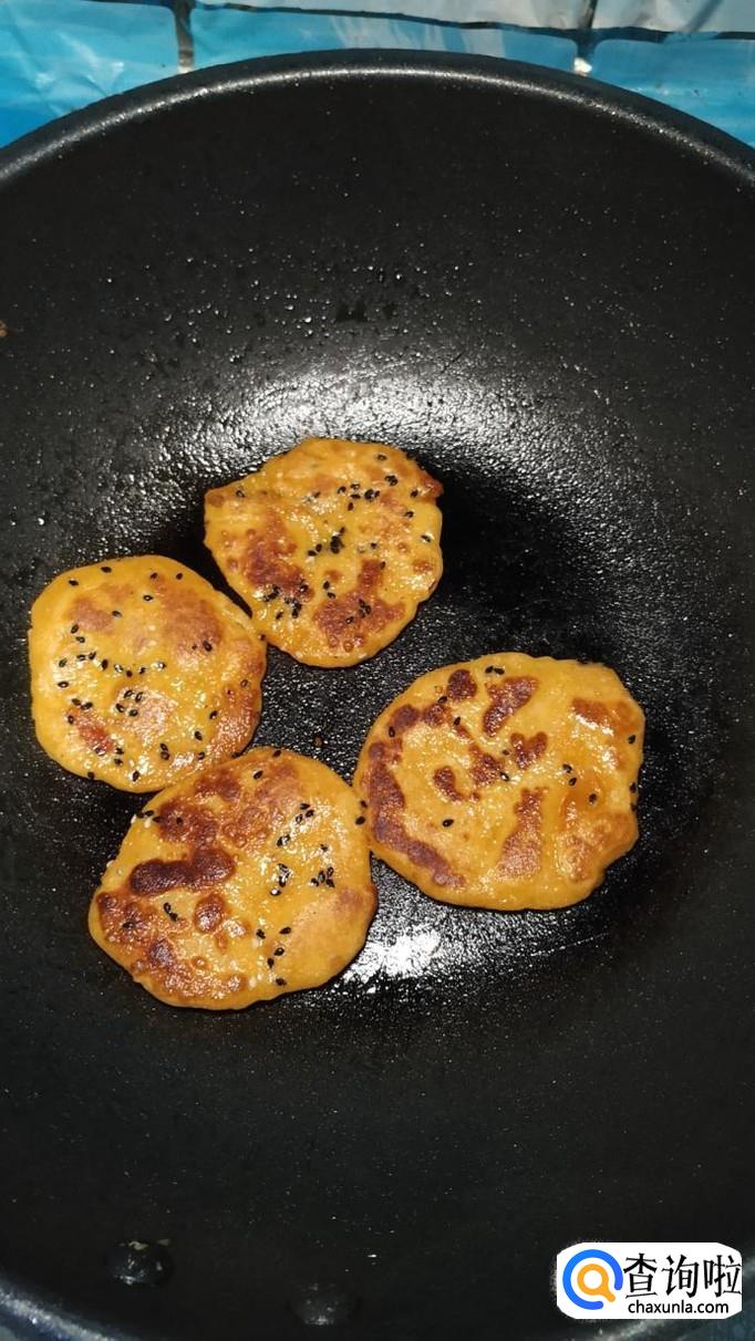 平底锅放油,油热后,将柿子饼放入锅中,小火慢慢煎,火大特别容易糊,所以一定要小心了,可以晃晃锅,多翻几次。