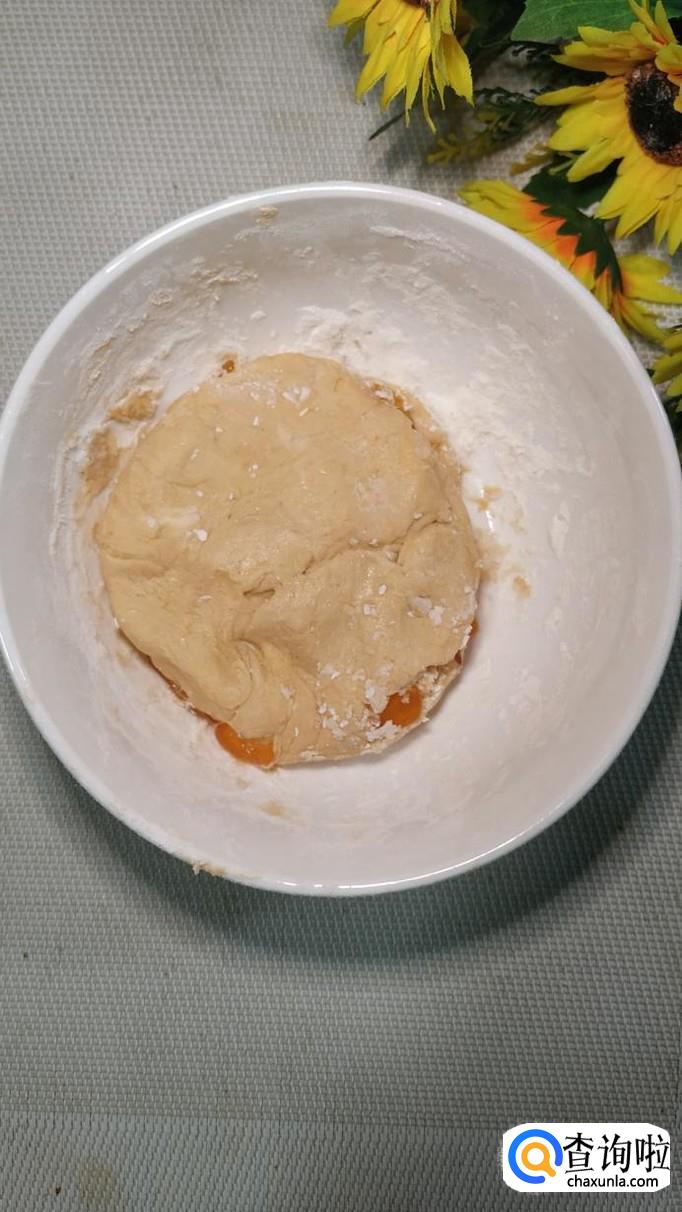 用清水和成面团。不要太硬,也不要太软,以不粘手为宜。