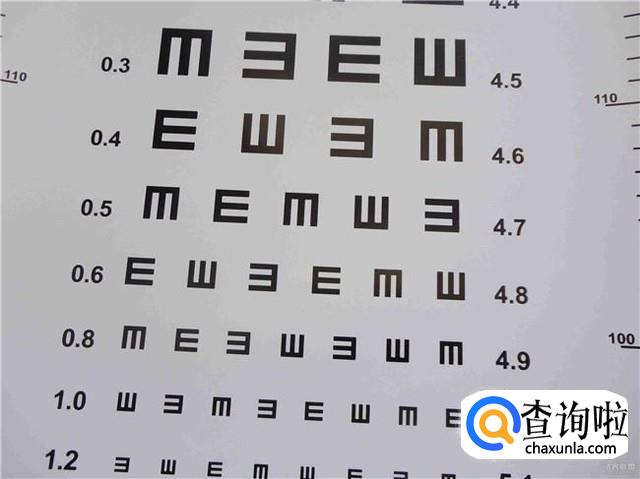 视力表上有大小不同开口方向各异的E字母,测量标准是从0.1到2.0或者4.0到5.3,正常视力为1.0或者5.0以上。