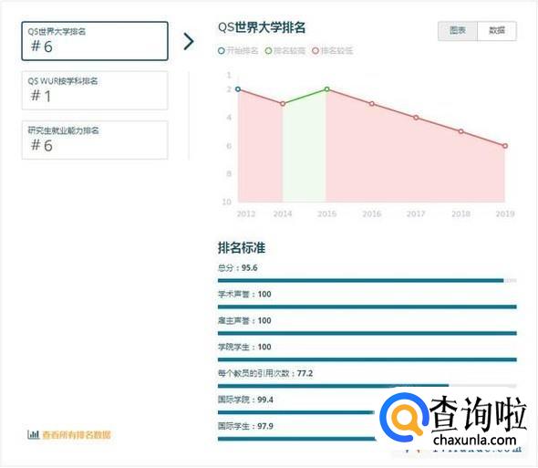 注:QS世界大学排名是世界公认最具影响力的全球性大学排名之一,主要评价指标为:学术领域的同行评价(40%)、全球雇主评价(10%)、单位教职的论文引用数(20%)、教师/学生比例(20%)、国际学生比例(5%)、国际教师比例(5%)