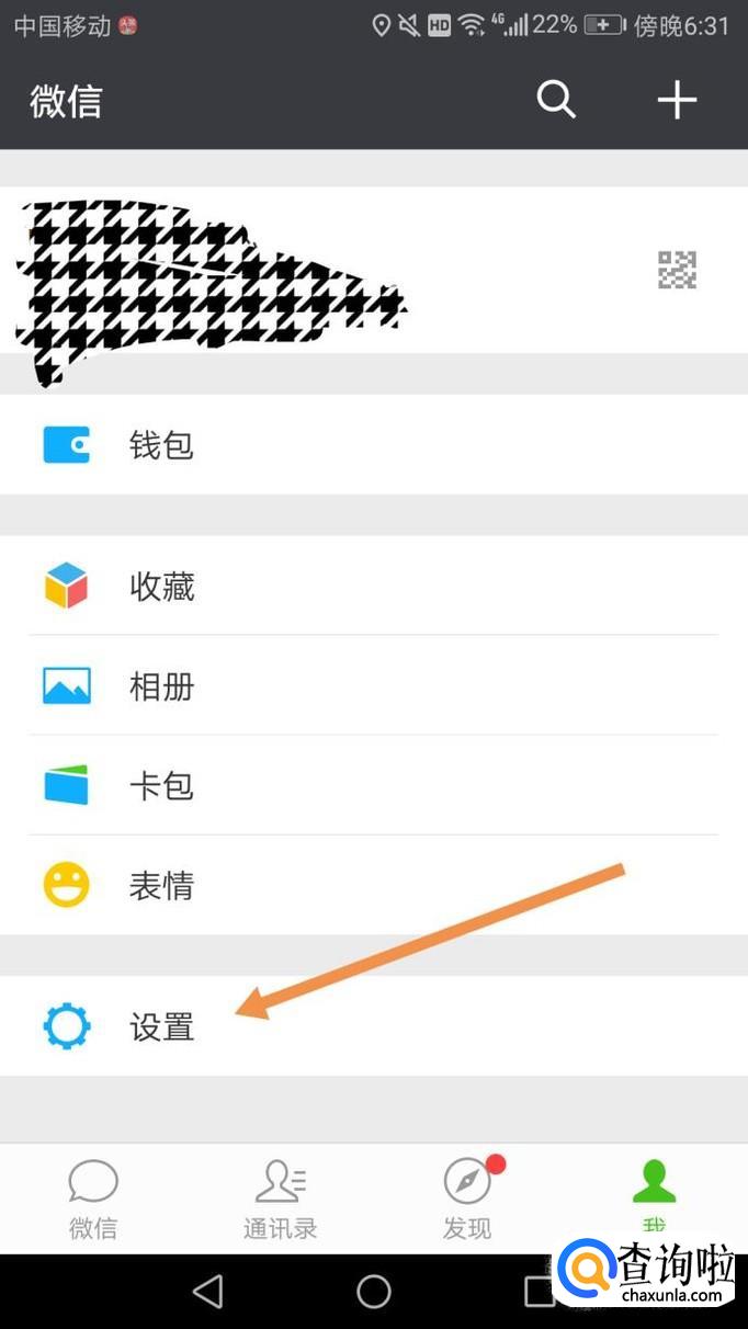 首先打开微信,点击“我”,然后点击最下方的设置,如下图。
