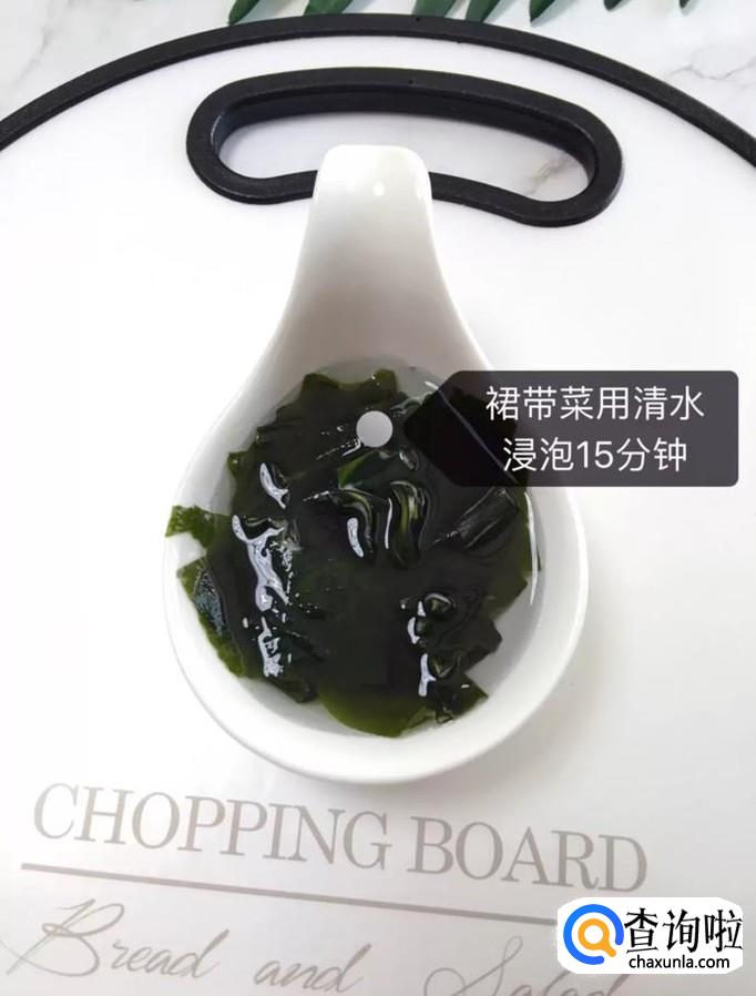 接着将裙带菜用清水浸泡15分钟,如下图所示。