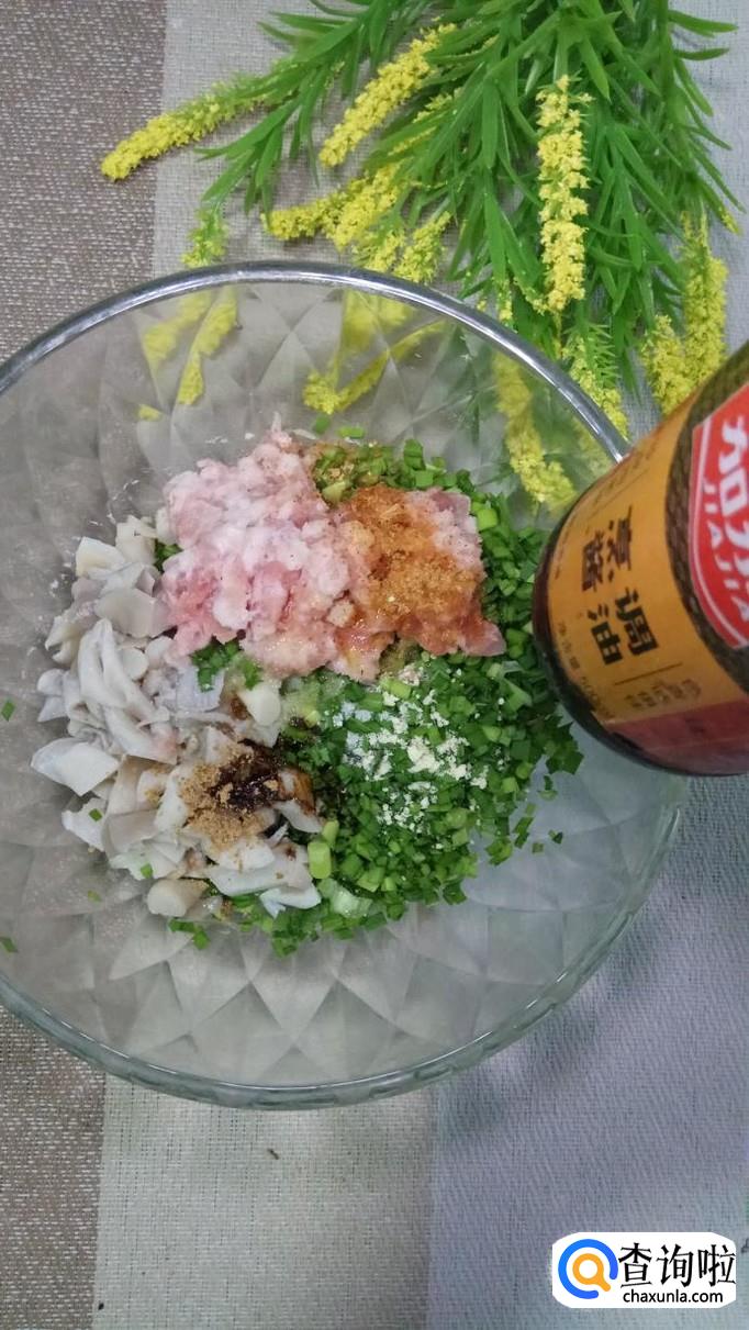 加入少许熟油,再加入适量盐,鸡精,五香粉,生抽,老抽,搅拌均匀,做馅儿。