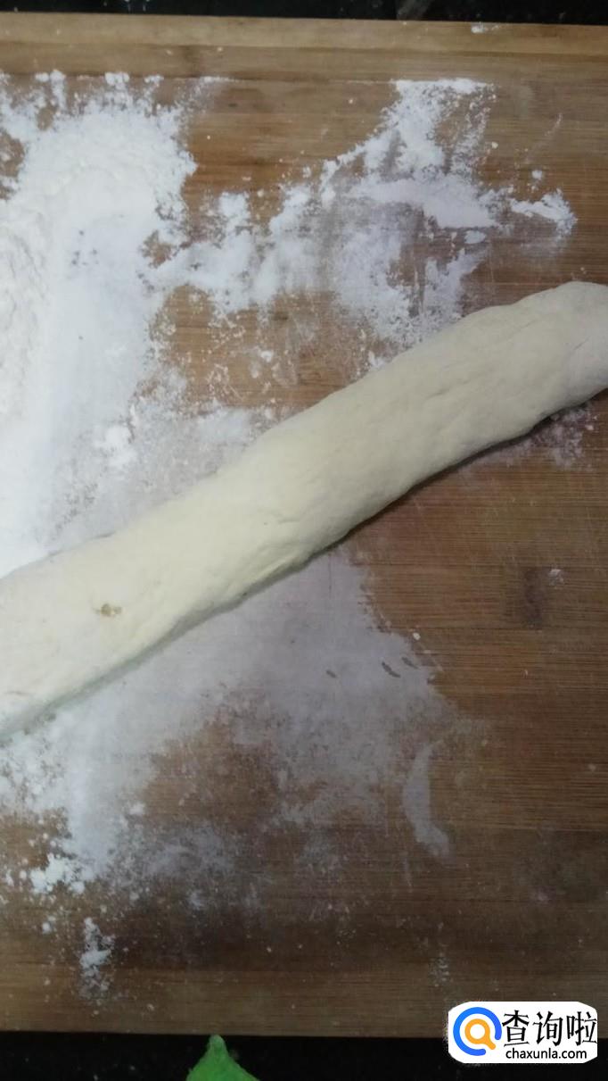 待面团发酵至两倍大,再次揉成面团,搓成长条。