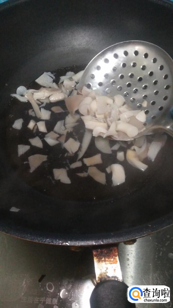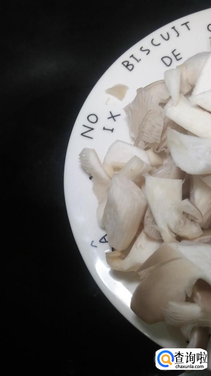 准备适量平菇,洗净后,用手撕开,放入锅中焯水,焯好后捞出,切成小块备用。
