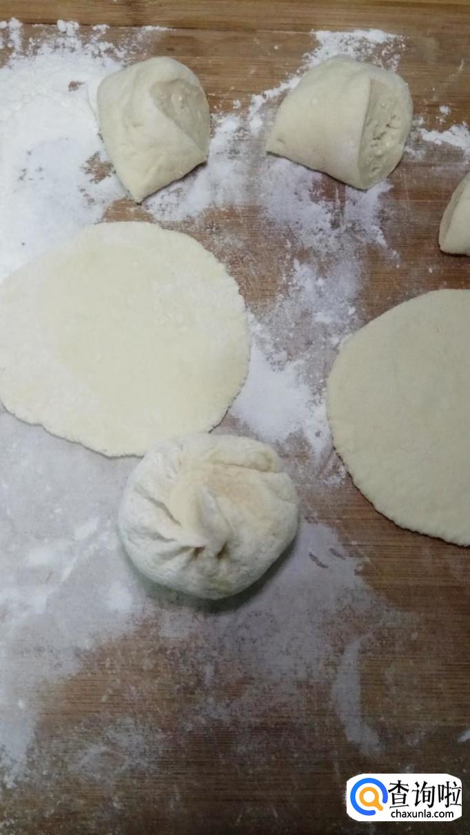 分成小剂子,然后擀成薄片,将做好的馅放入面片中,用手捏好,做成包子的形状。