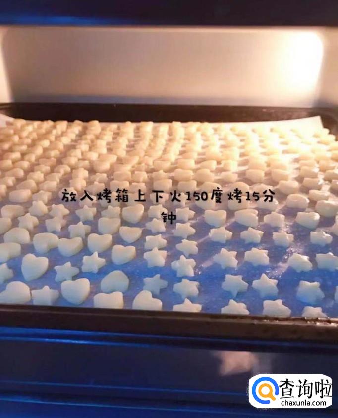 接着把烤盘放进烤箱,上下火150°烤15分钟,如下图所示。
