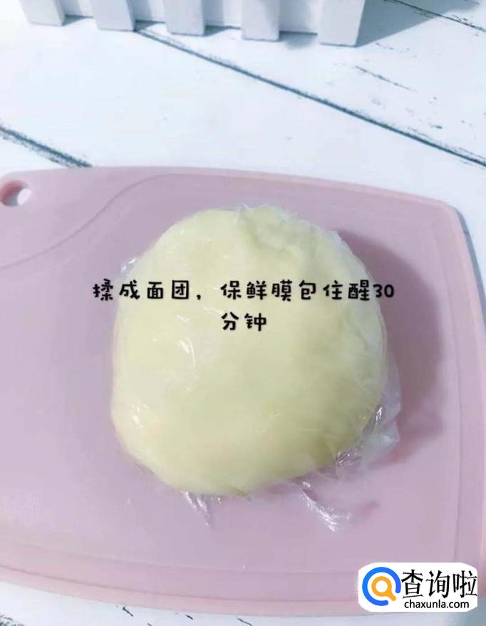 接着把碗中的材料搓揉成团,并盖上保鲜膜醒发30分钟,如下图所示。