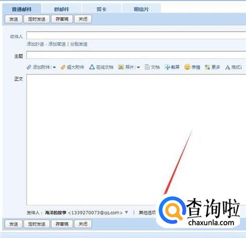 进入普通邮件的写信页面,点击右下方的“其他选项”