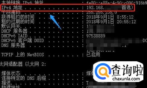 然后在下方信息中找到IPV4后面的地址,这个地址就是目前该电脑的网关,也即路由器的IP地址了,如下图所示...