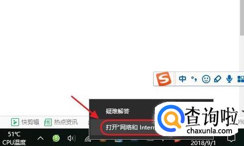 还有另外一种方法也可以查看,那就是鼠标右键点击电脑右下角的无线网图标,然后选择其中的“打开网络和Internet设置”;