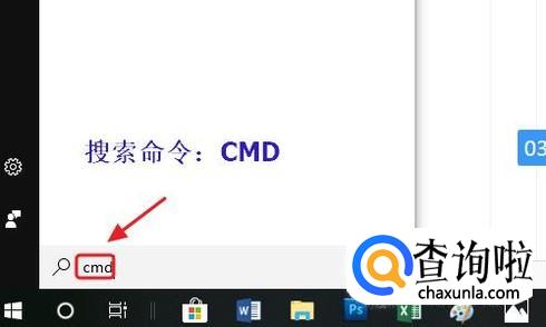 如果用的是win10系统,那么首先最简单的查找办法是,点击左下角的小娜图标,也就是那个小圆圈,然后输入命令:cmd;