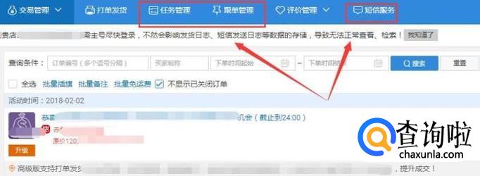 点击后直达如下页面,在顶部会看到有:任务管理、跟单管理、短信服务三个选项卡,可根据所需点击相应的选项卡进行下一步的操作。