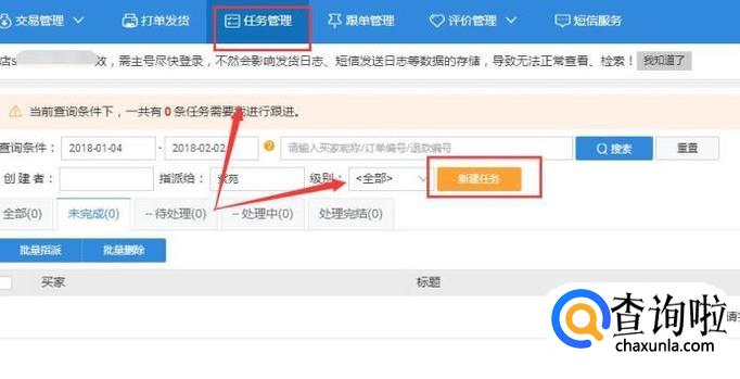如下点击的是“任务管理”选项卡,会打开如下页面,再按照提示找到并点击页面中的“新建任务”按钮,进行创建任务操作。