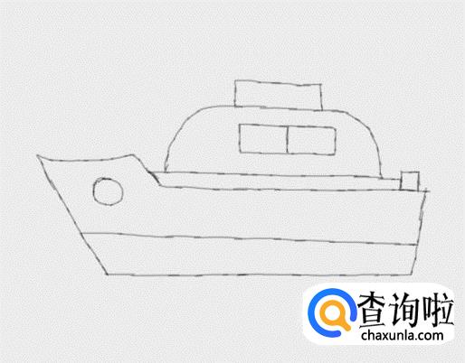 再在轮船上画出驾驶室的细节结构,如图所示: