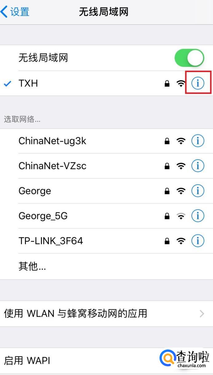 进入页面后,点击连接网络后面的圆圈加感叹号标志,如下图所示。