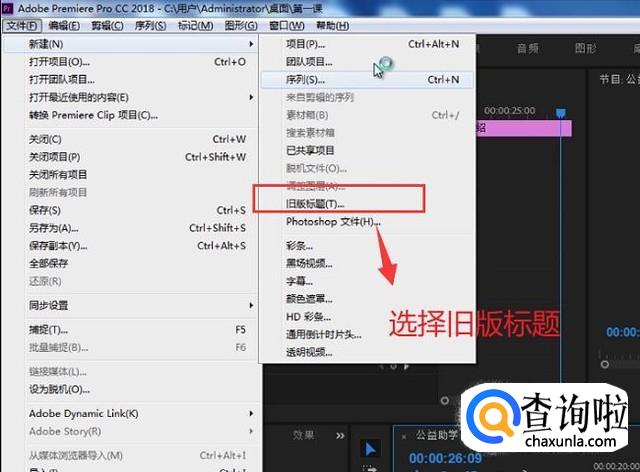 首先打开文件菜单,点击新建下面的旧版标题选项,如下图所示