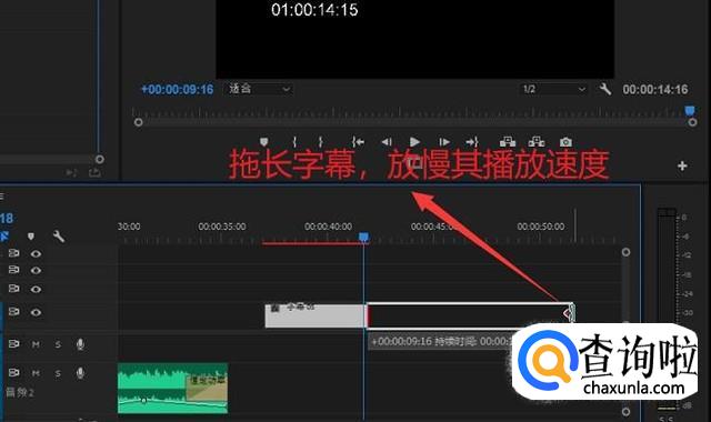 然后我们按住鼠标左键拖长字幕,这样字幕的播放时间就可以放慢许多,如下图所示