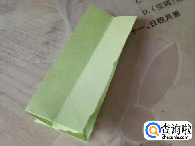 准备一张长方形的卡纸,对折,打开后,在另外一边对折