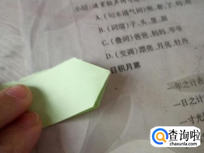将这个角撑开来的同时,边往里折