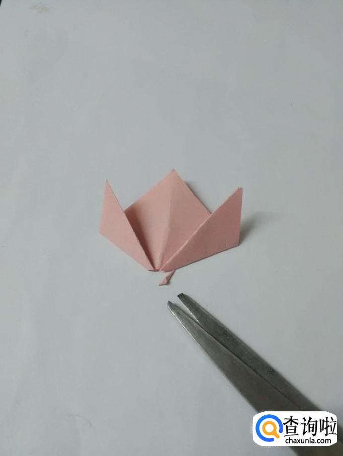 用剪刀将花朵下面的角剪去一个小尖。