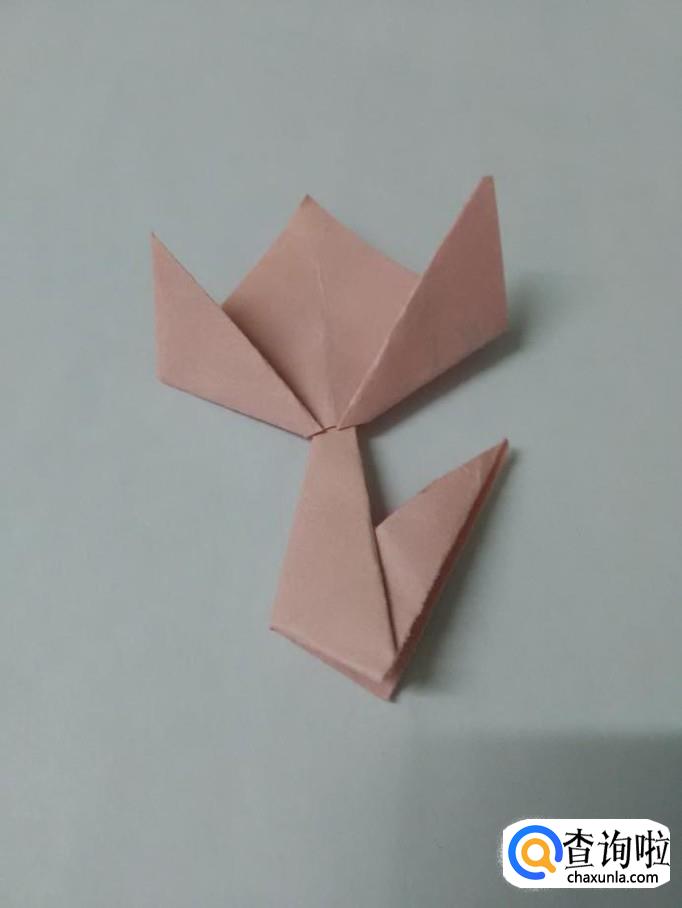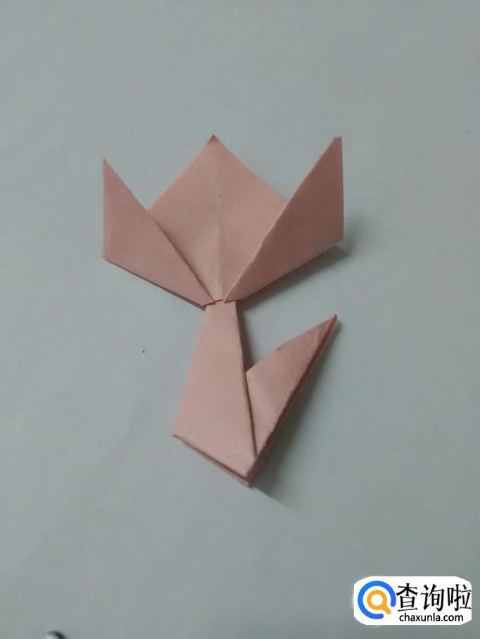 再将两侧的角向上折,折成郁金香花朵。