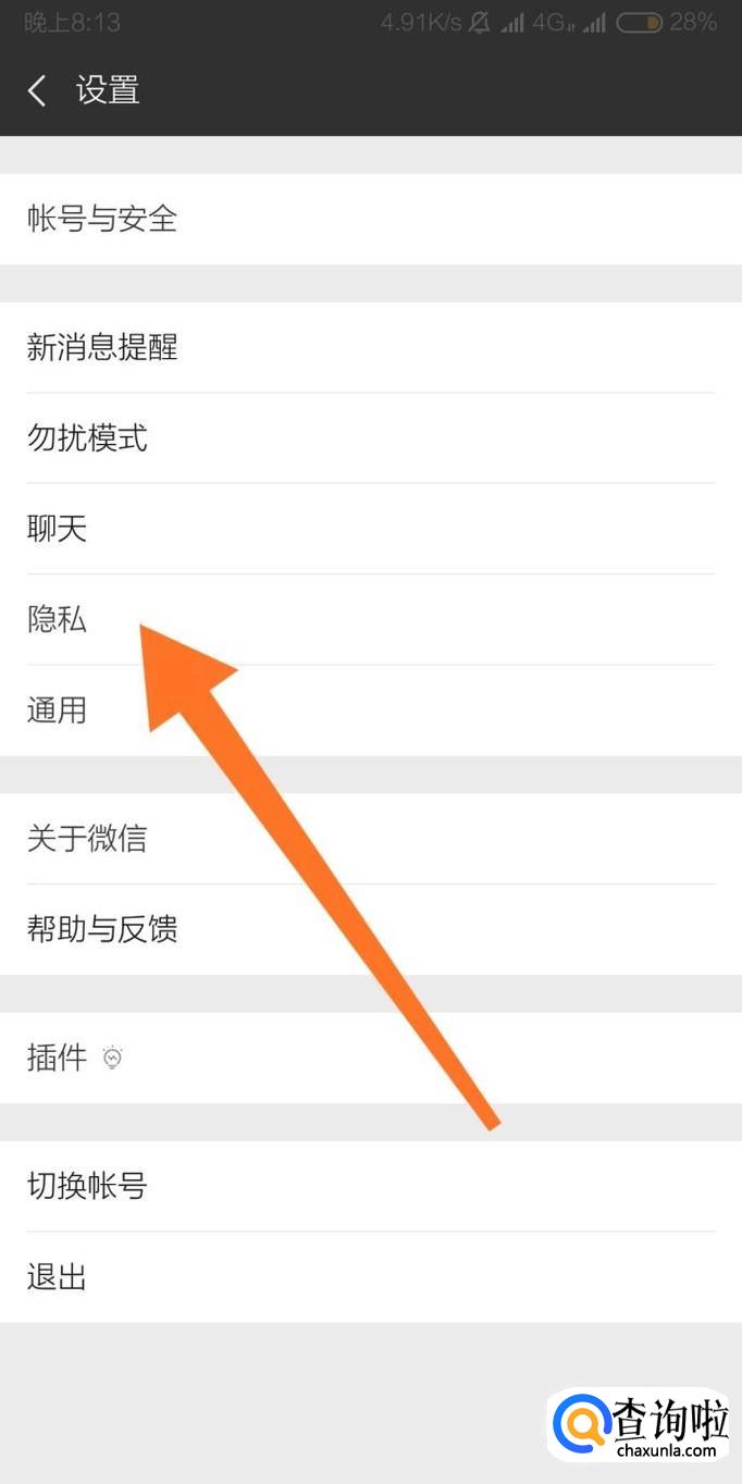 然后点击进入“隐私”设置选项。
