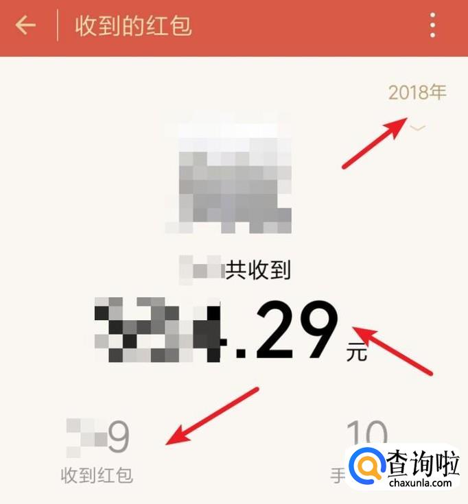 点击后,我们就可以看到当前年份收到的红包个数和金额总数了。