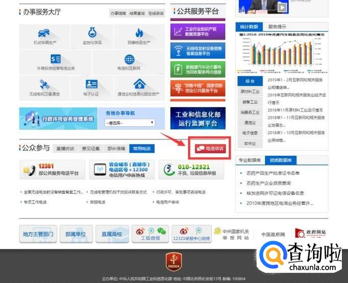 下拉页面,在网站最下方找到“电信申诉”并点击进入。
