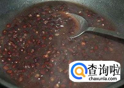 红豆用清水洗净,然后放到锅里煮成红豆汤。干辣椒爆香,芝麻炒熟,葱切断,备用。