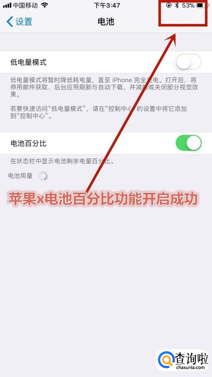 这样苹果手机电池百分比功能就开启了。