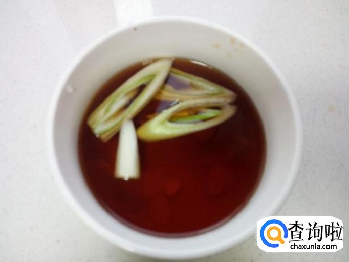 碗里放入盐,白糖,醋,酱油,料酒,放入切好的葱,姜,蒜。兑水,调和成料汁,备用。