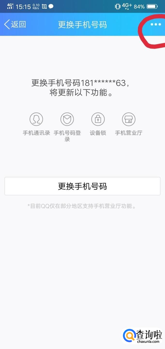 页面右上角有三个点,点击它。(如果要更改手机号可以点击下面的更换手机号码。)