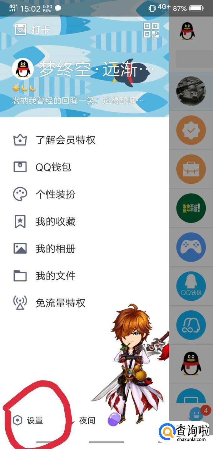 点击QQ上的头像,点击左下角的设置