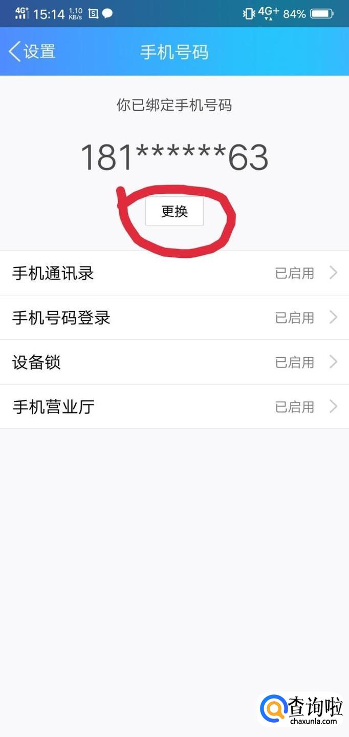 点击手机号码。继续点击更换。