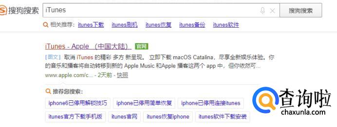 首先打开浏览器,搜索“iTunes”,然后点击进入官网。