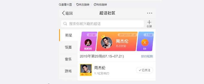 在2018年下半年,超级话题运营月两年时间以后,正式上线独立APP——超话社区。于是,艺人明星的粉丝们又将该APP作为自己的根据地,开始在这里为自己的偶像应援。同时,微博本身也针对超级话题功能进行了版本升级,其中最重要的一点就是增加了排名功能,排行榜的诞生,瞬间激活了各路粉丝的战斗力。目前大家耳熟能详的“超话排名”也便来源于此。