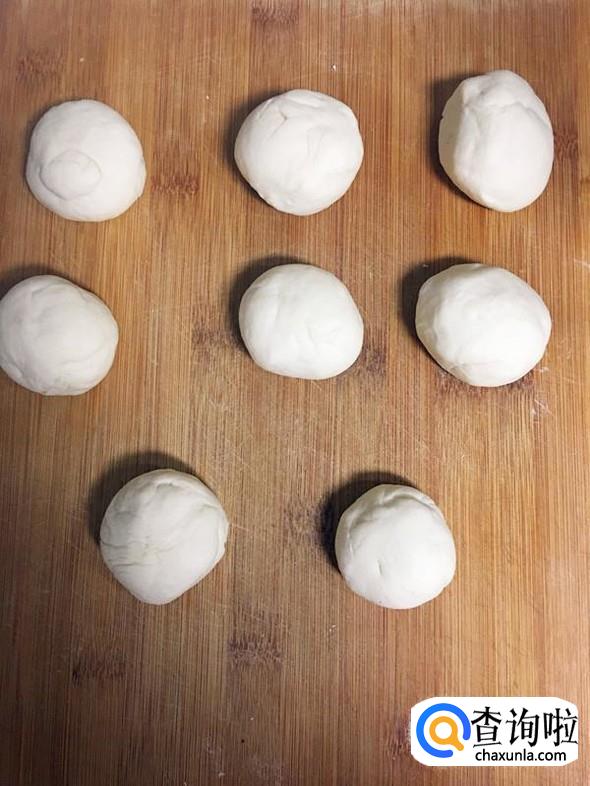 把发酵好的面团揉成一个长条,然后分割成若干个小份。