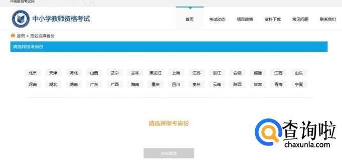 进入报名系统,在这里选择你所要报考教师资格证书的省份,然后点击登录。