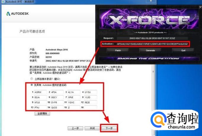 最后将Activation”激活码复制到“我具有Autodesk提供的激活码”中,点击“下一步”