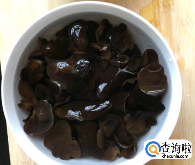 把泡发的木耳摘取根部的木渣,清洗干净,太大的可以用手撕成小块或用刀切成条备用。