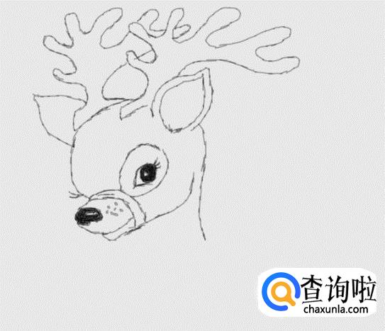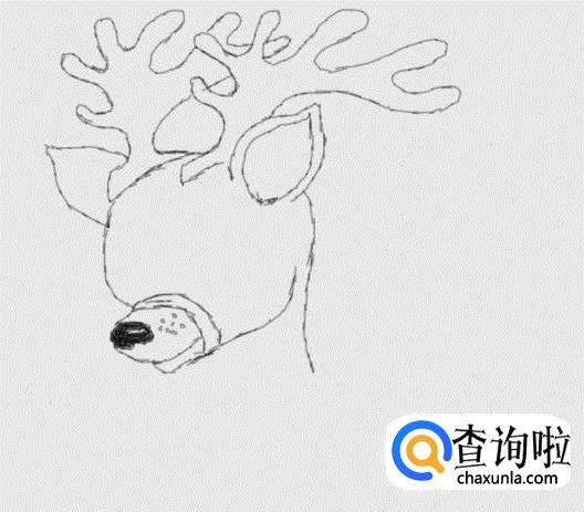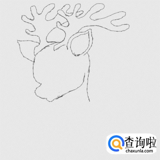 再在驯鹿的两只耳朵的基础上再画出驯鹿的头部轮廓,如图所示: