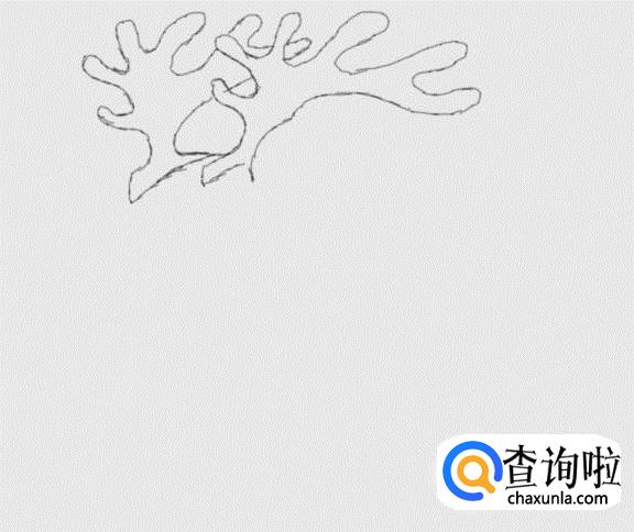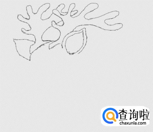 首先画出驯鹿的两只鹿角,如图所示: